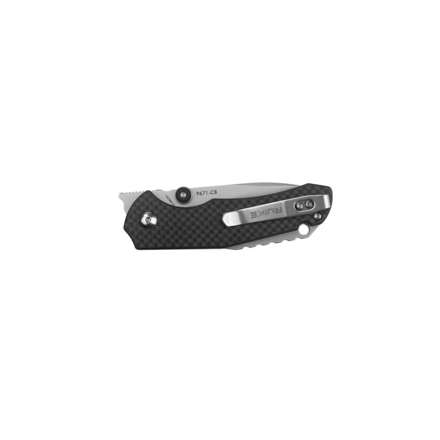Ruike P671-CB to niewielki nóż codziennego użytku o nowoczesnej stylistyce, podkreślanej przez nakładki rękojeści z włókna szklanego, żebrowany backspacer oraz powiększony kołek do rozkładania głowni.