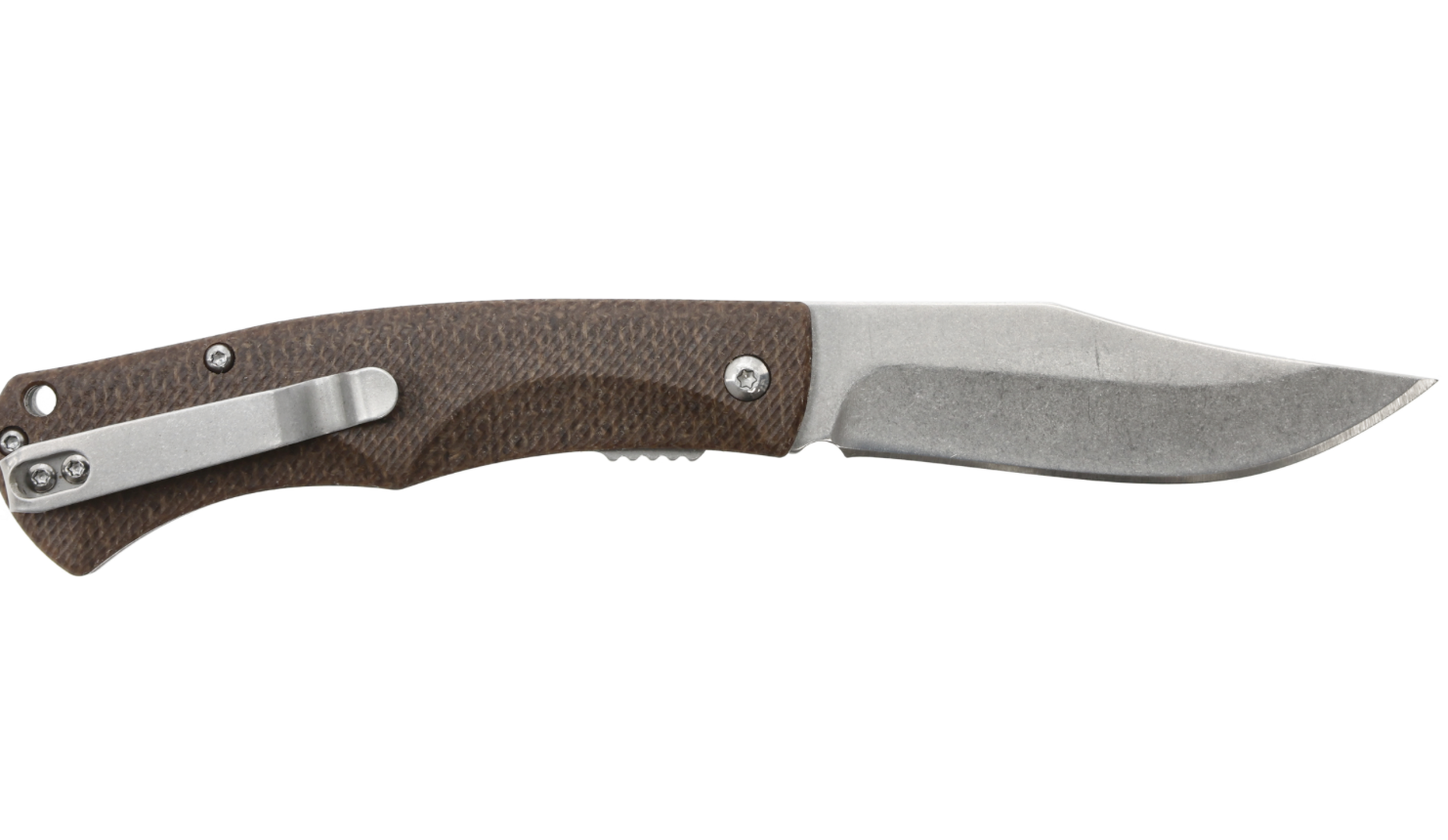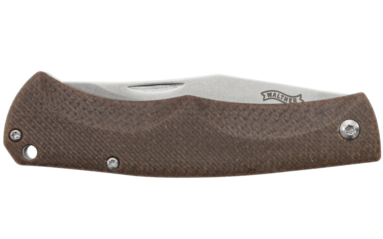 Okładziny rękojeści wykonano z brązowej Micarty, kompozytowego materiału z płótna prasowanego pod ciśnieniem z syntetyczną żywicą. Krawędzie okładzin są gładkie i zapewniają ergonomiczny, wygodny chwyt.