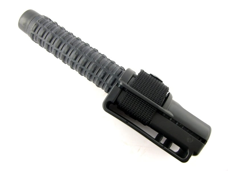 W komplecie kabura z wytrzymałego tworzywa sztucznego z mocowaniem do paska, umożliwiająca przenoszenie pałki zarówno w stanie złożonym, jak i rozłożonym.