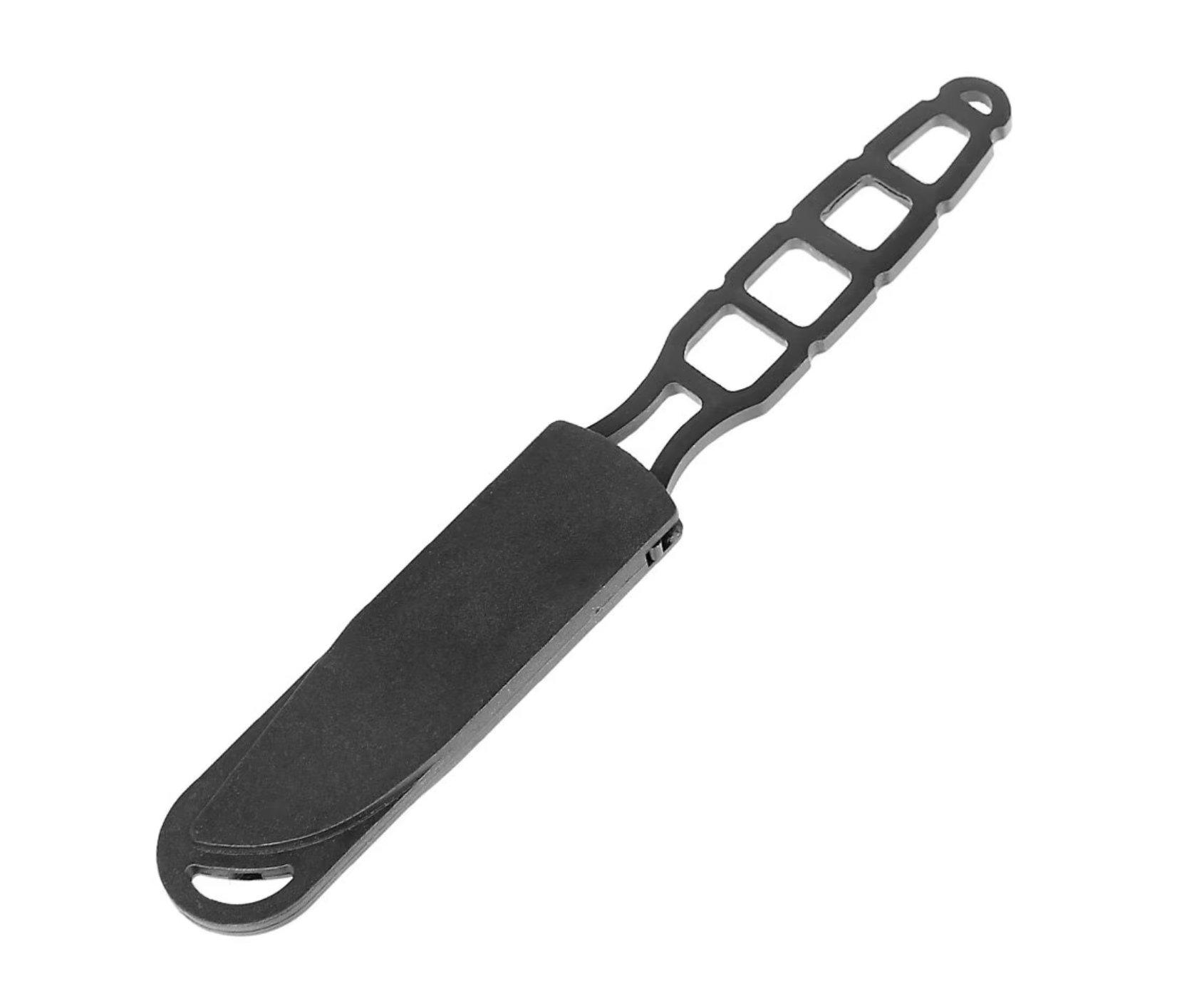 Wykonany z jednego kawałka stali nierdzewnej 5CR15 o grubości 3,2 mm został na całej powierzchni pokryty matową farbą w kolorze czarnym, zabezpieczającą przed korozją i odblaskami.