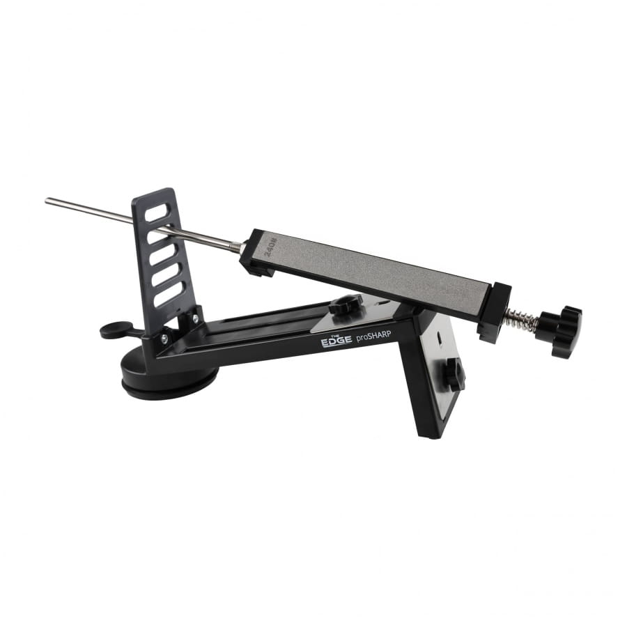 THE EDGE proSHARP 10-30° to diamentowy system ostrzący, który skonstruowano w celu zapewniania pełnej kontroli, wygody, oraz prawidłowego procesu ostrzenia. Ostrzałkę wyposażono w 3 płytki diamentowe, prowadnice z regulacją kąta w zakresie 10-30° oraz stabilną podstawę z przyssawką. Umożliwia ostrzenie noży edc, kuchennych, myśliwskich i survivalowych o najwyższym stopniu hartowania.