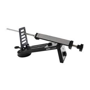 System składa się z polimerowej 3 płytek diamentowych, podstawy z przyssawką, ramki z nastawami kątowymi (10-30°) oraz prowadnicy, w której montujemy 1 lub 2 płytki diamentowe. Dzięki zastosowaniu mocnej przyssawki system można solidnie przytwierdzić do blatu lub stołu. Nóż mocujemy w podstawie za pomocą 2 blokowanych płytek zaopatrzonych w gumowe nakładki ochronne. Kolejnym krokiem jest umieszczenie płytki diamentowej (1 lub 2) w sprężynującym uchwycie prowadnicy oraz wybór kąta ostrzenia najlepiej pasującego do typu, oraz przeznaczenia noża. Polimerowa ramka ma 5 fabrycznie zdefiniowanych kątów: 10°, 12°, 20°. 25°, 30°. Zmiany kąta dokonujemy, umieszczając pręt prowadnicy w wycięciu o interesującym nas kącie. Z uwagi na możliwość mocowania w prowadnicy 2 płytek diamentowych jednocześnie, proces szlifowania jest bardziej stabilny i wygodniejszy.